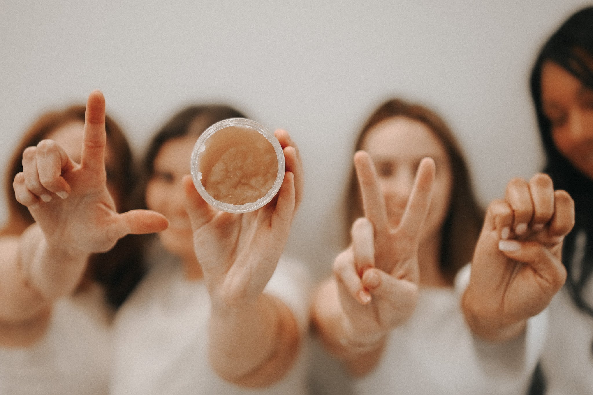 Our Lite Sugar Scrub has been formulated with fine grind sugar granules and the following therapeutic active raw ingredients: